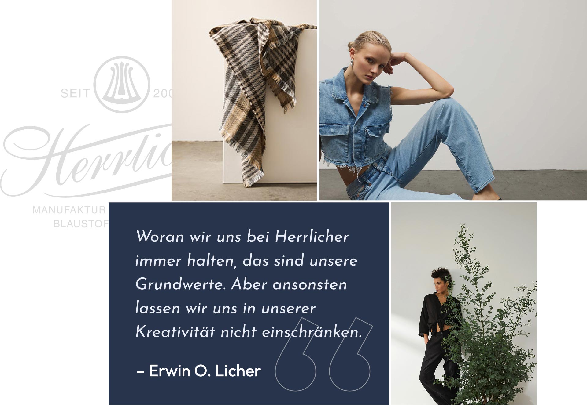 Durch beste Zutaten miteinander verwoben, zeichnen sich die Blau- und Tragestoffe aus dem Hause Herrlicherdurch einen unverwechselbaren Stil aus.