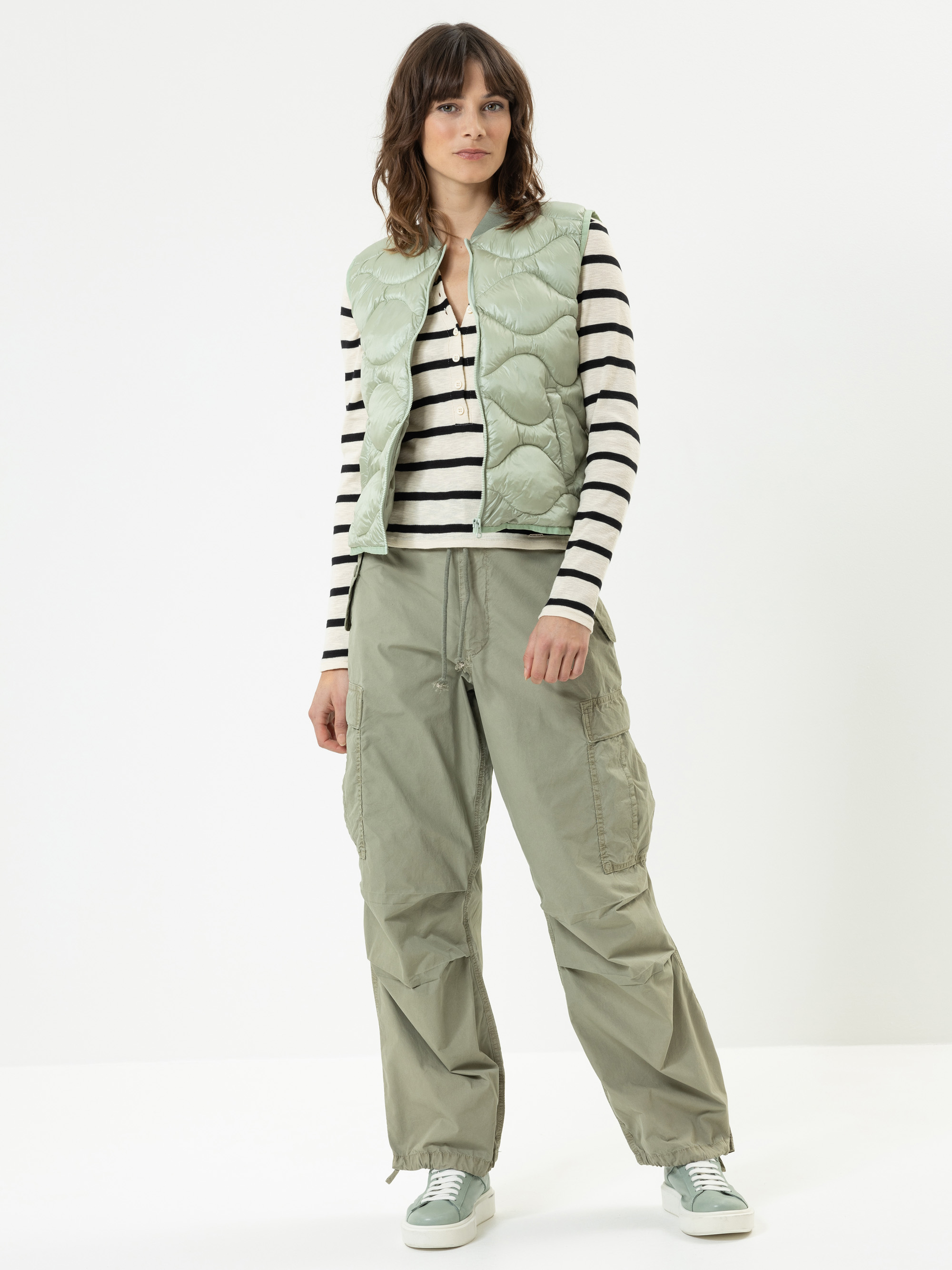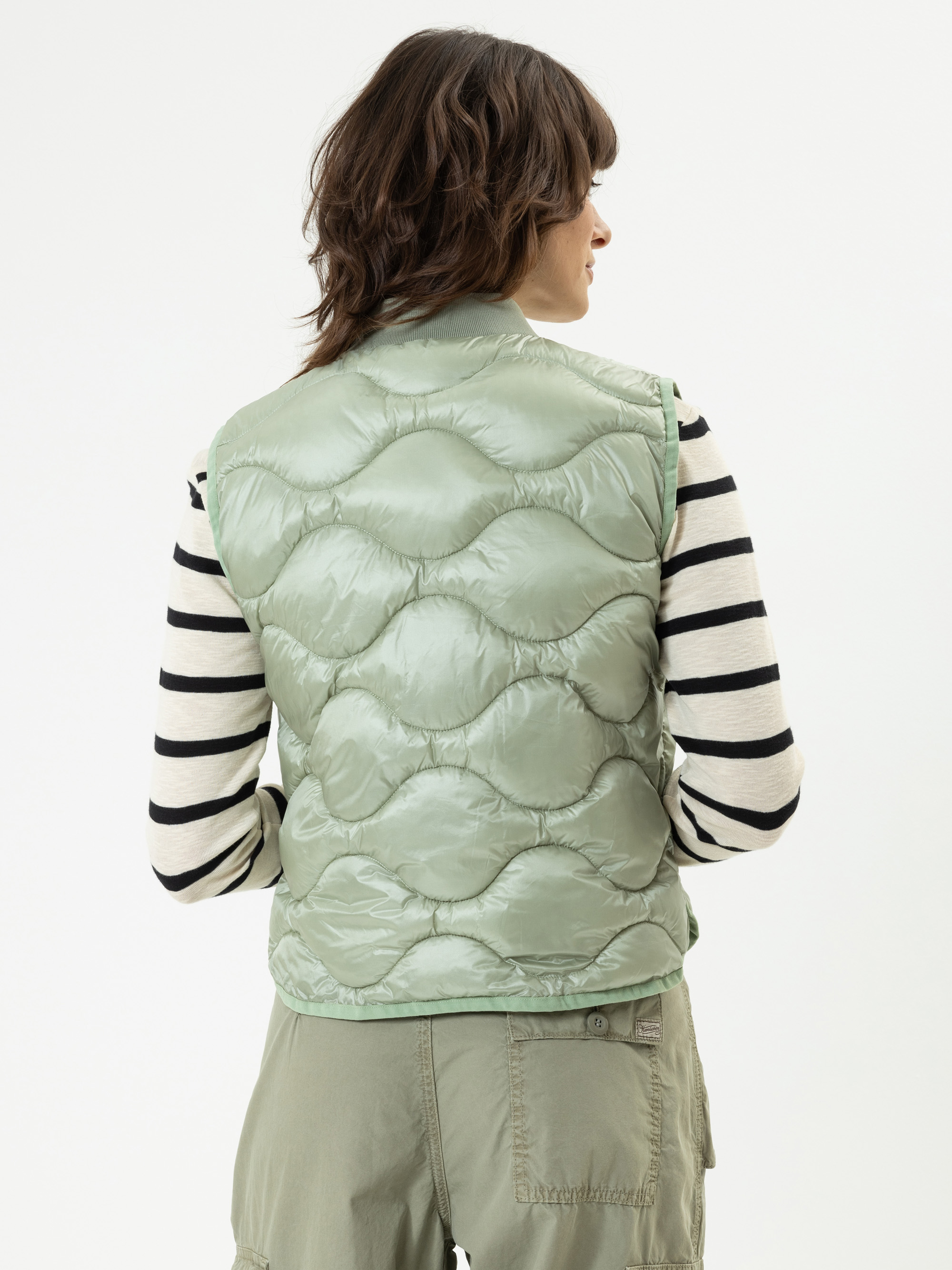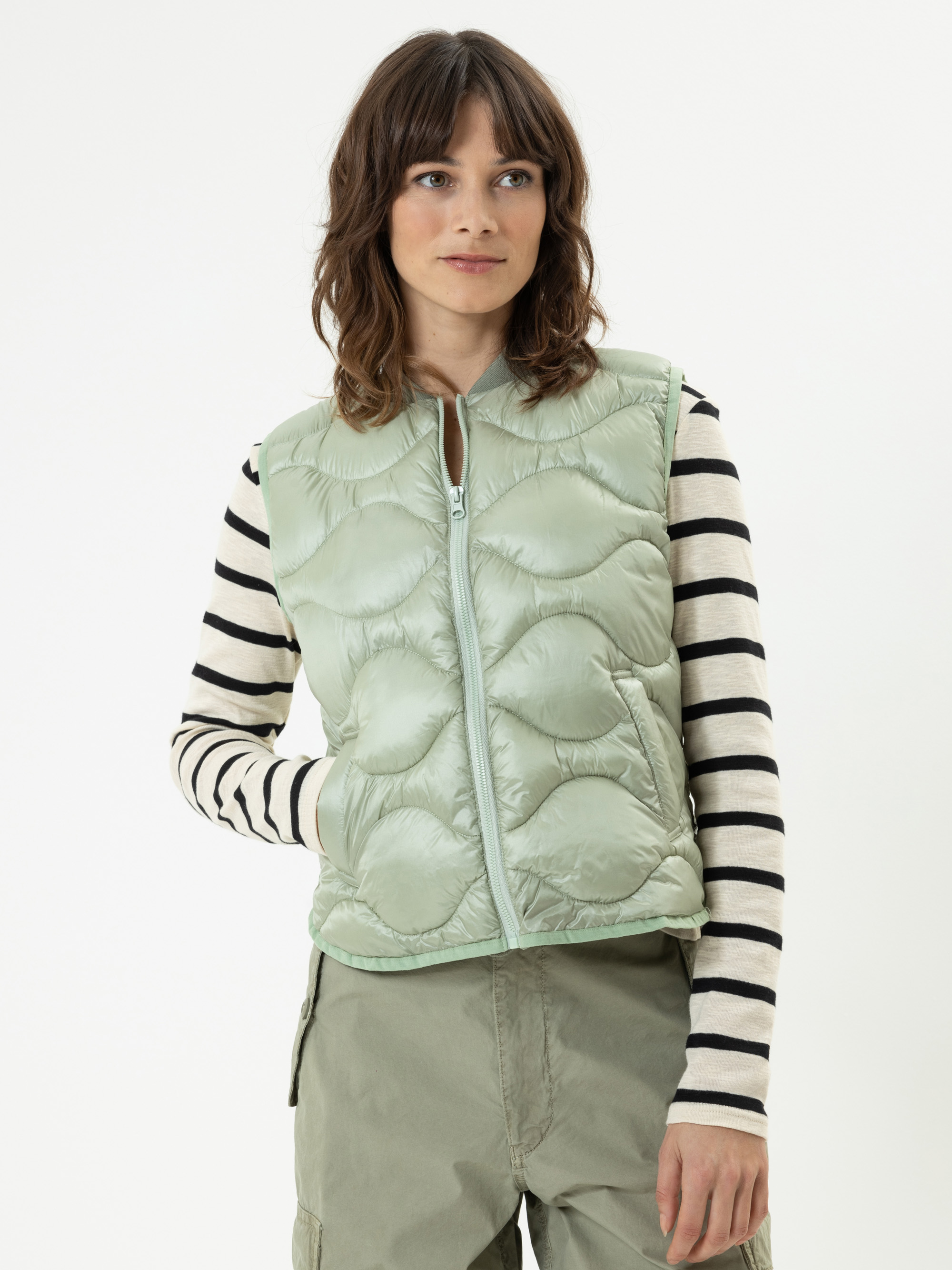 Unsere Cierra Steppweste mit Strickkragen und abgerundetem Saum sieht stylisch aus und wärmt. Schnell übergezogen und zu jeder Jahreszeit besonders komfortabel. Die leichte Weste ist mit der nachhaltigen Sorona® Faser vegan ohne Daunen gefertigt. Die innovative Füllung aus nachwachsenden Rohstoffen garantiert Wärmeisolierung und Formstabilität. Seitliche Paspeltaschen und ein Zip machen den Style komplett.