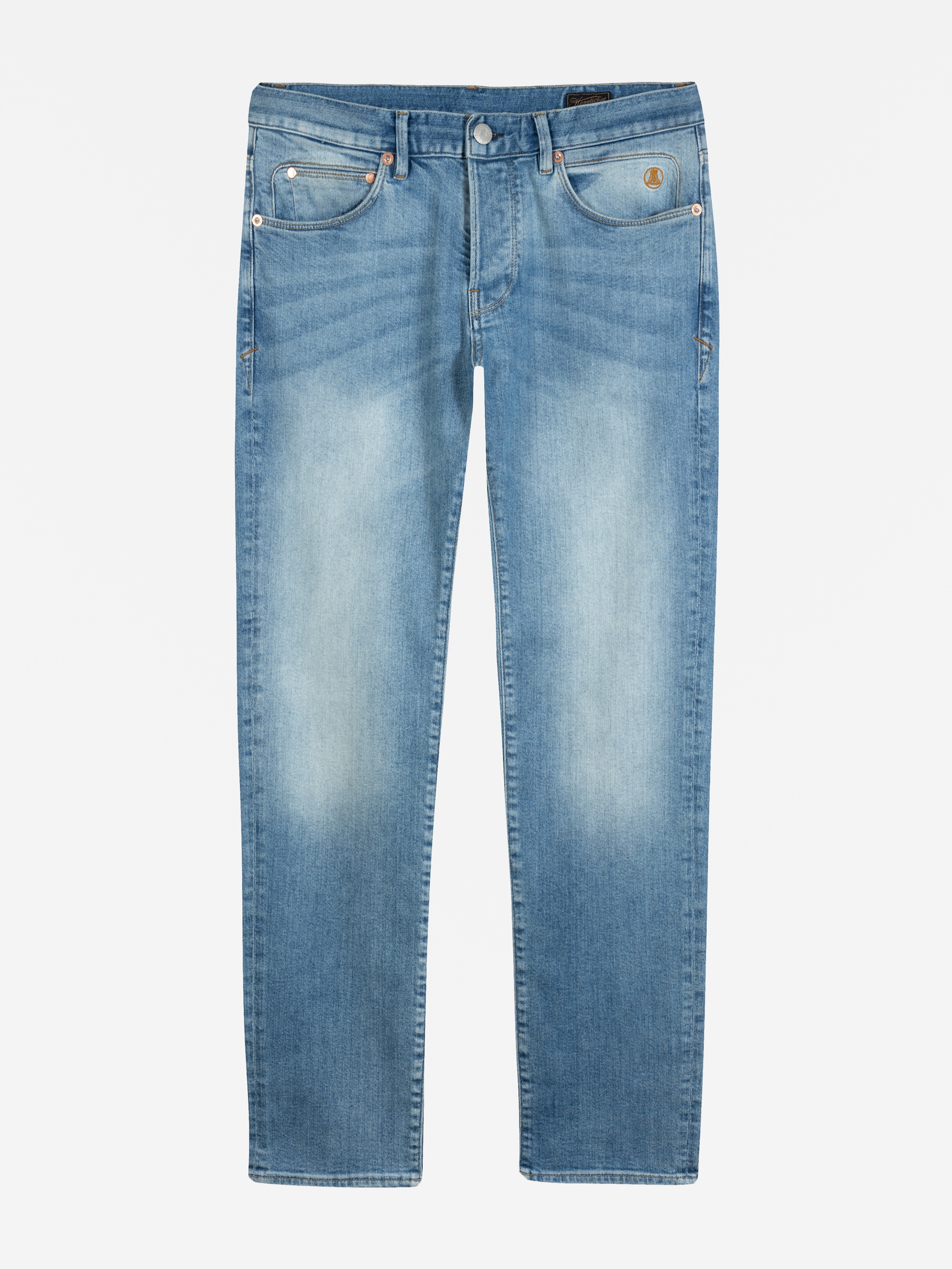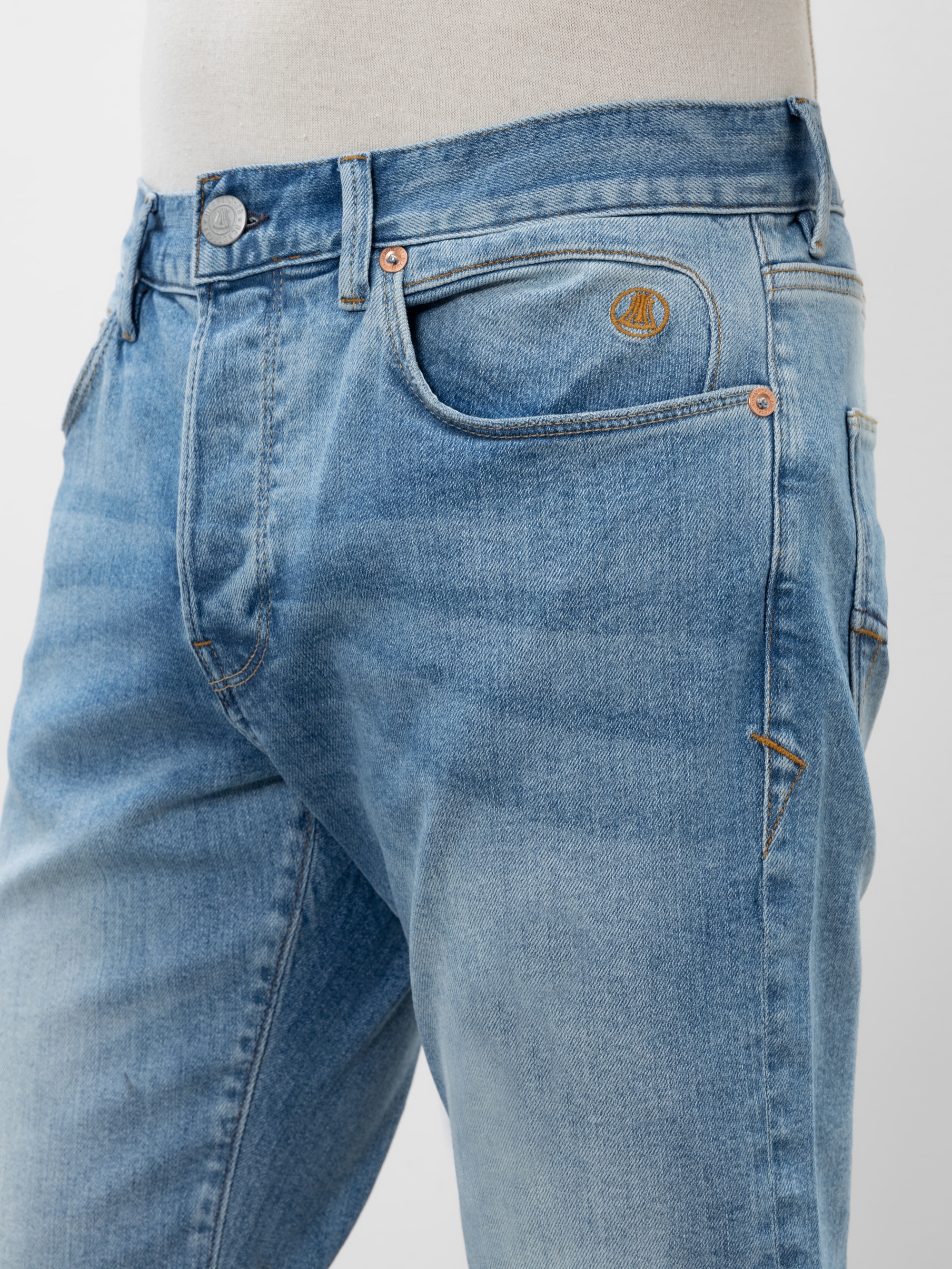 - Oben abgeschrägte Gesäßtaschen mit eingearbeiteter Kordel