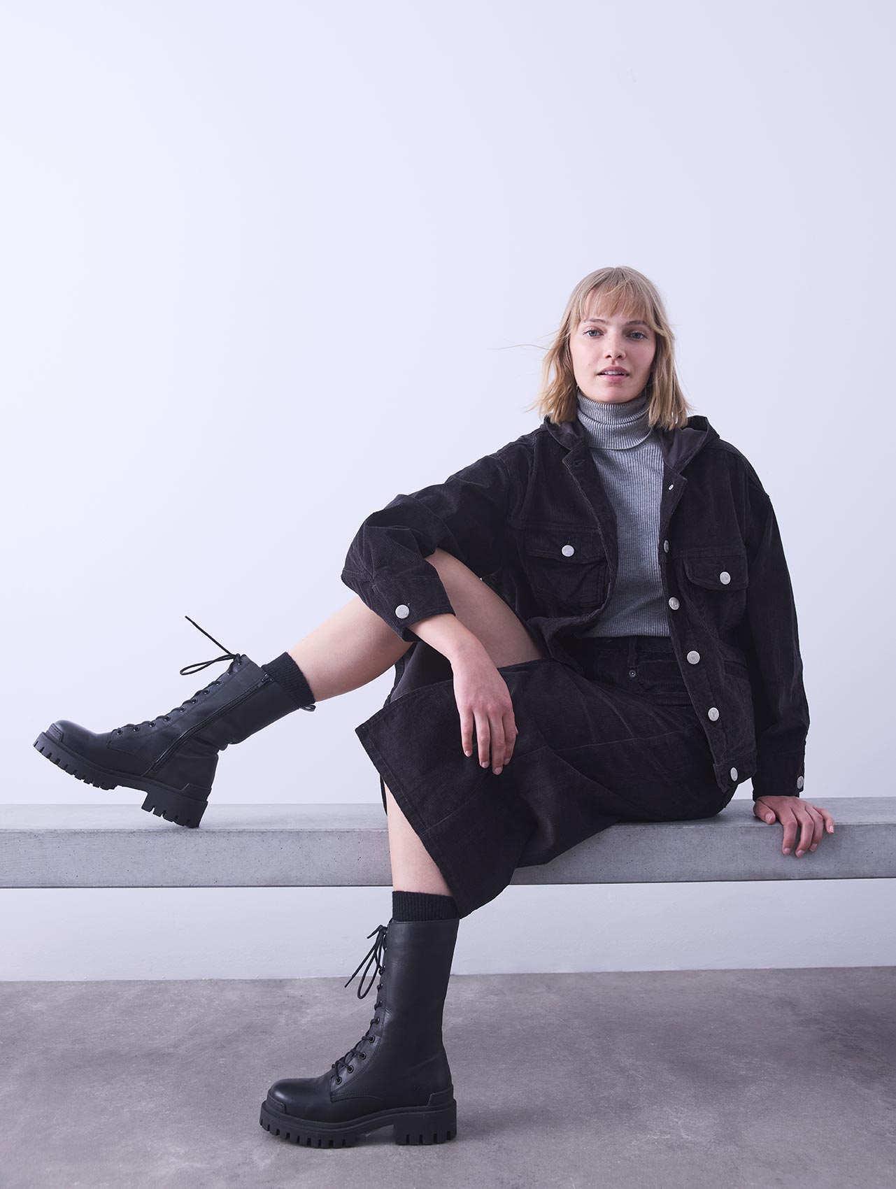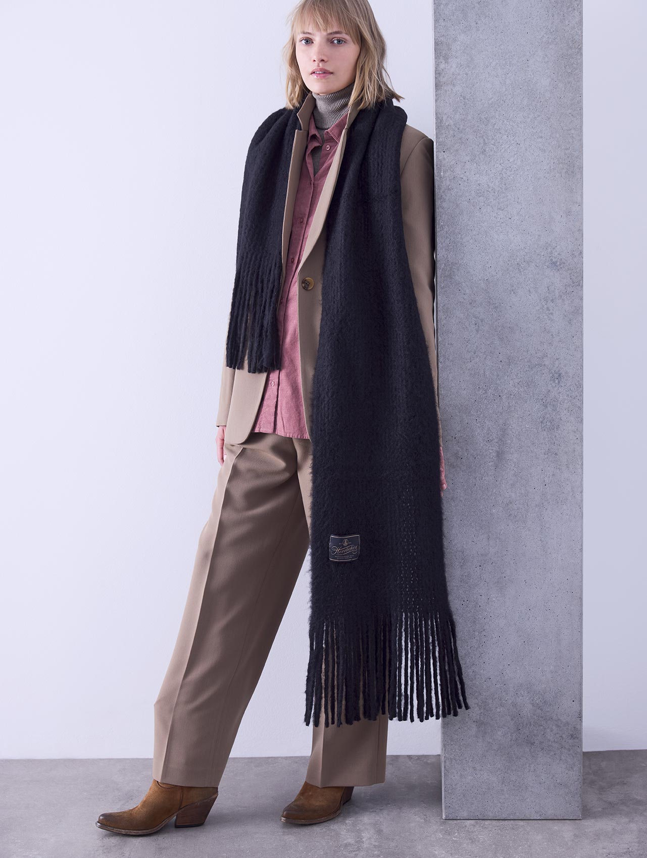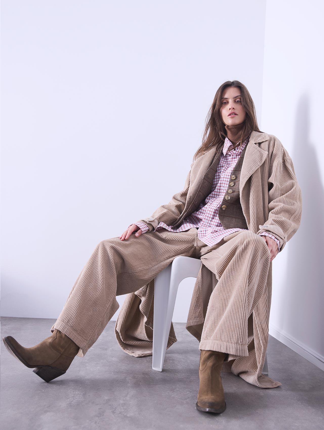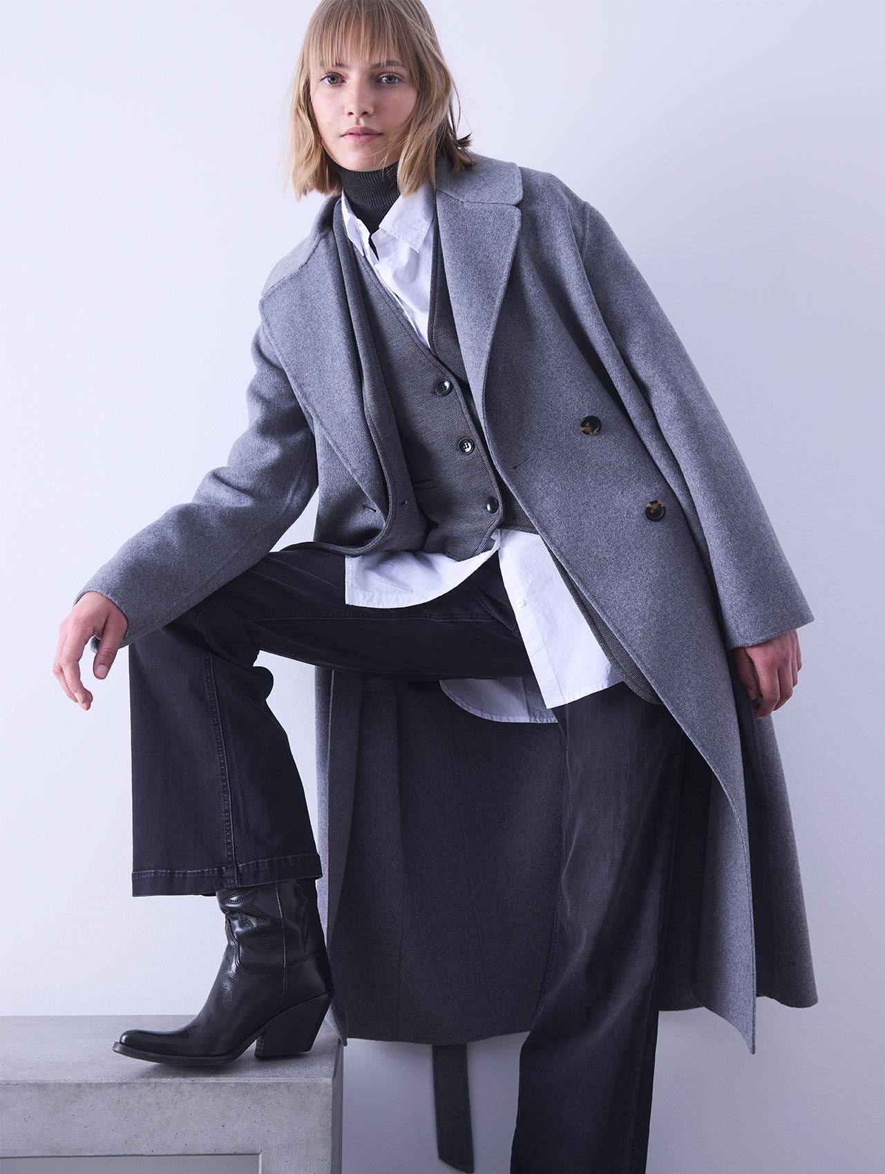 Unsere neue Kollektion verlockt mit opulenten Styles. Schicke Anzüge mit angesagter Silhouette, großzügige Mäntel und edle Leder Kombis fangen die Blicke. Dazu gehören coole Oversize Hemden und softe Rollkragenpullover aus Rippstrick. Ergänzt werden die neuen Herbst Winter Damenlooks mit den schönsten Strickaccessoires und stylischen Winter- und Western Boots.